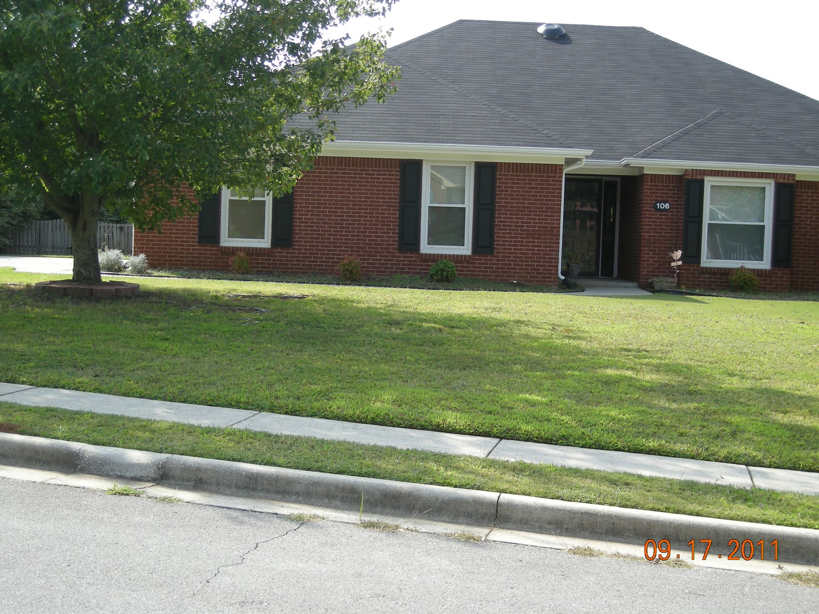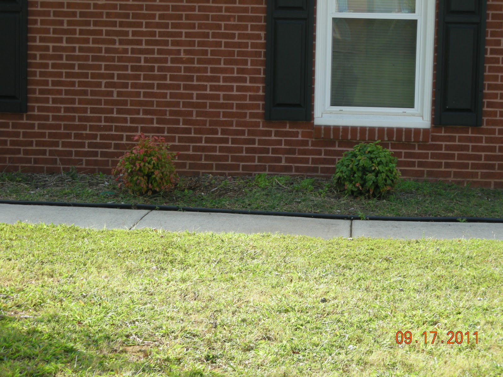 Last weekend was a 4 day weekend for both of us. It was Travis’s Friday off, and he had Monday off for Columbus Day (gotta love government perks!). We spent most of it working outside in our yard. Friday, we spent several hours pulling up everything in our front flower beds. If you remember from prior pictures, it wasn’t much. The few shrubs we had were very pitiful. However, they did NOT have pitiful roots. It was near impossible to pull some of them up, so we ended up cutting them as far down as we could. Saturday, we spent most of the morning and afternoon helping Jessica and Collier move into their new house (which is very cute!). I can’t wait to see it once they get everything set up! Monday morning, Travis and our neighbor, Rob, worked on trimming the bushes in between our houses. They had gotten very tall and out of control. They worked for several hours, but there is still a lot to go. What they did get done looks much better though! Monday afternoon was dedicated to pulling weeds and loosening up the ground in our flower beds. It was so compacted that it was literally hard as rock. Poor Travis…he got the rough end of the deal….swinging the pick axe all afternoon after working so hard that morning. By the end of the day, he was tired and sore all over. Big thanks to Cheryl for giving up your afternoon to help us…we really appreciate it! Although our flower beds are bare now, they actually look better than they did with the old shrubs in them. Next up is mixing in some soil conditioner, lining the beds with stone, and then we’ll be ready to plant!