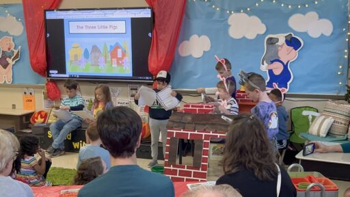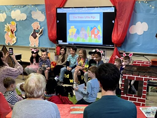 Meanwhile, while Savannah and I were gone on the field trip, Travis got a taste of what it’s like to run around all day as a mom…haha. He went to school in the morning to watch Abigail in her Fairy Tale Readers Theater. Abigail was a narrator in the Three Little Pigs :)