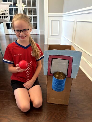 Savannah was big into making her own arcade games this month. I loved the basketball goal that she made!