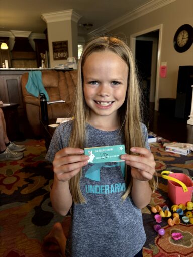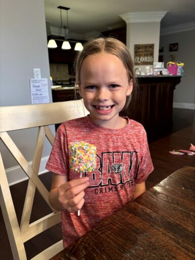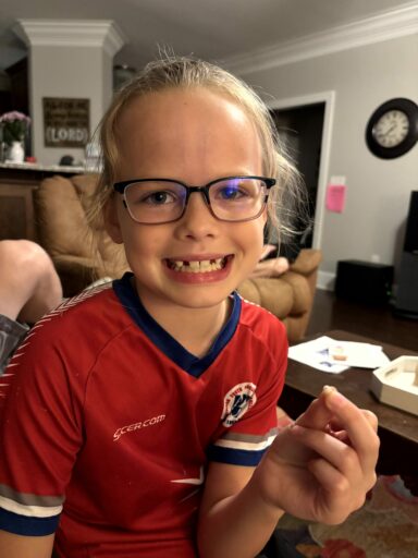 That evening, Savannah was wiggling a loose tooth and it just came right out in her hand. It’s the other baby tooth that doesn’t have a permanent tooth behind it. We will be doing braces at some point in her future to shift her teeth around, but for now she has some pretty big gaps in front with no teeth to fill them. I love her beautiful smile even with the gaps though! 😊