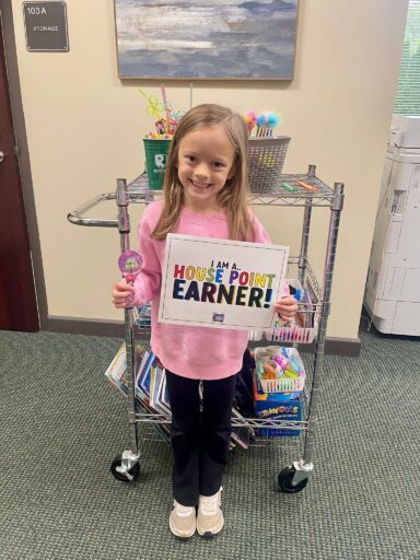 Abigail was chosen as a house point winner this month at school and was very excited!