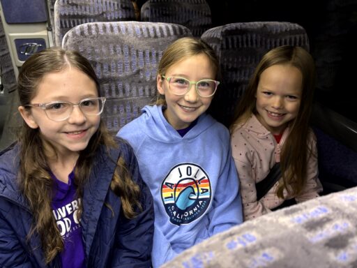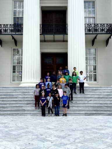 Savannah and I went to Montgomery on April 11th on the 4th grade field trip. Two years ago, Brooklyn unfortunately missed this field trip due to a wedding we were attending, so this was my first time to go on this field trip too. Savannah was very excited, especially about getting to ride a charter bus! We had to be at the school at 5 am and had a very full itinerary once we arrived in Montgomery. Savannah sat with her friends, Lillian and Rose, in the back of the bus on the way down there, and I sat by myself further up front. It worked out well because I was able to get a lot of stuff cut out for the preschool bible class I was teaching.