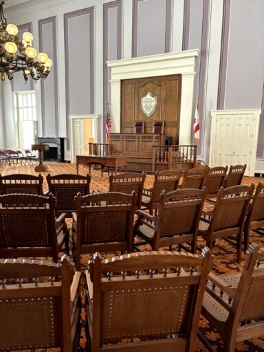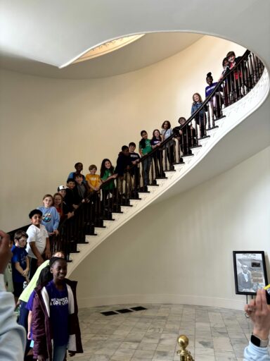After that we had a quick lunch in a nearby park (boxed Chick-fil-a sandwiches, chips, and a giant cookie) before loading the bus again to go to the Capitol. Our tour guide showed us around and told us lots of facts in each room we went in. It was obvious that he loved his job because he told us way more information than we could ever absorb…haha.