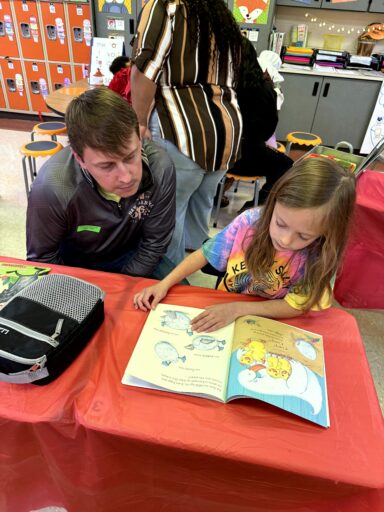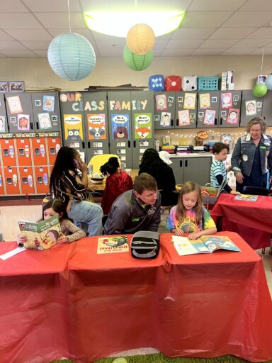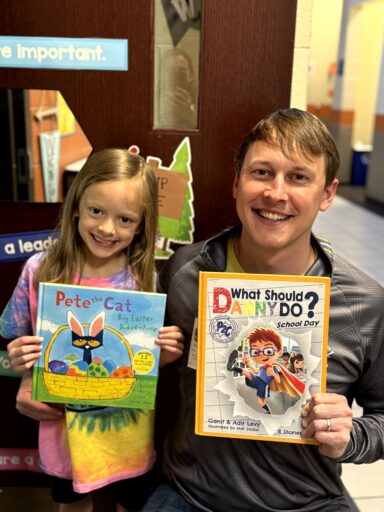 Then later that morning, he was the mystery reader for Abigail’s class and ate lunch with her afterward. She loved having him at school multiple times in the same day.