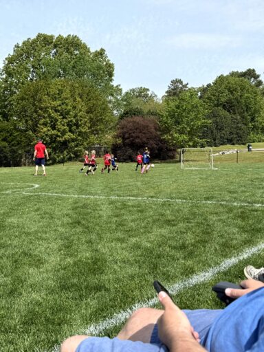 Abigail played her game at 10:15 at Dublin 4. Travis took her to it, and Phil and Gena came to watch. Gena texted me pictures and updates during the game. Abigail scored 2 goals very close together and was excited about that. Travis thought it was probably the Berries’ best game of the season so far. It ended up in a tie or very close to it.
