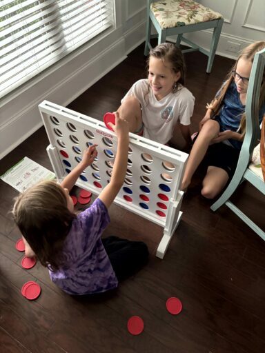 I bought this large version of Connect 4, and the girls had fun trying it out.