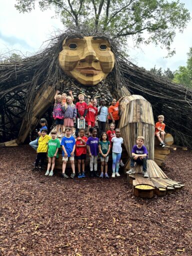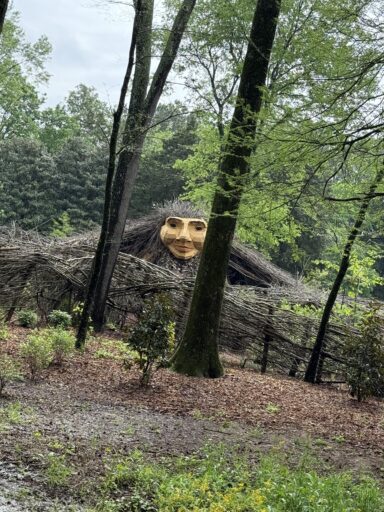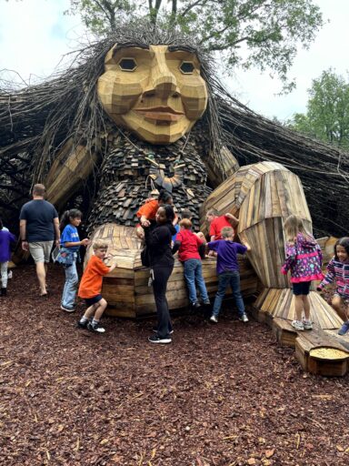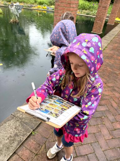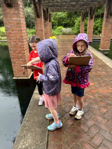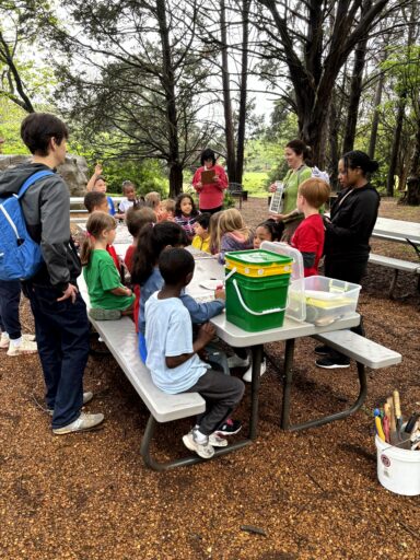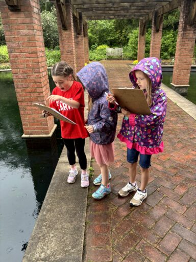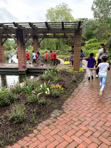 I was happy to get to go on Abigail’s field trip to the Botanical Gardens on April 25th. All of my girls went there on 1st grade field trips if I remember correctly. It rained off and on while we were there, but we didn’t get too wet. We did a habitat program for a couple of hours in the morning before lunch. A guide led us around the garden and the kids had clipboards where they could check off different habitats that we saw. They got to dig in the mud for worms and explore a lot of different areas, looking at different plants and trees. There were so many beautiful flowers there! They did a special hands-on activity about birds and what types of food they eat based on the shape on their beaks. Chopsticks, water droppers, spoons, etc. all simulated different bird beaks, and the kids were supposed to try to pick up the different foods with them. I thought that was a neat idea. The other really neat thing from today was exploring a new exhibit called Mama Zelda’s Hair. It was a maze made of tree branches….it was super cool! I can’t imagine how long it took them to make it. After lunch, we went to the butterfly house and then it really started raining hard. We ended up having to end a little early because there were storms headed our way, so we didn’t have time to do much free play, but that’s okay. The kids had a great time!