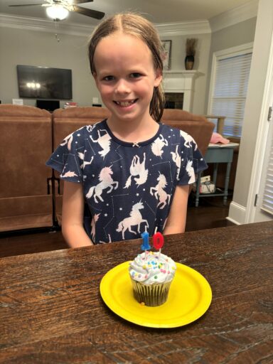 Savannah was happy to have me come for lunch on her birthday (with a donut in hand). We also celebrated as a family after dinner with cupcakes and time for her to open some gifts.