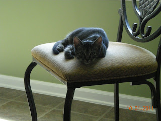 Travis is turning out to be the disciplinarian of the two of us (who’s surprised!), and he has even been known to “spank” a misbehaving kitten (a.k.a. like when Gabby knocked over a picture frame and the trashcan in the bathroom last night). We still catch them both on the furniture every once in a while (some days are worse than others), but they obviously know they aren’t supposed to be up there because they jump down right away before we can even get on to them).
