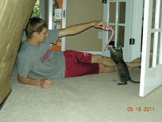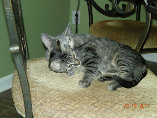Over the past few weeks, we have learned a lot about being pet owners. Specifically kitten owners. First of all, you must constantly pick up after your kittens. This includes picking up their toys, cleaning up stray pieces of litter off of the floor, sweeping around their food and water bowls, etc. You also have to straighten up stuff around the house that they may get into. Stuff like picture frames that repeatedly get knocked over and curtains that get ruffled the wrong way. Even pantry items that get dragged out of the pantry and into the dining room. We’ve learned that kittens are very curious. They like to climb and explore EVERYTHING. We’ve found them sitting on just about anything they can possibly get to. We’re trying to train them to stay off of the living room furniture, but so far it’s not going very well. It may be a lost cause.