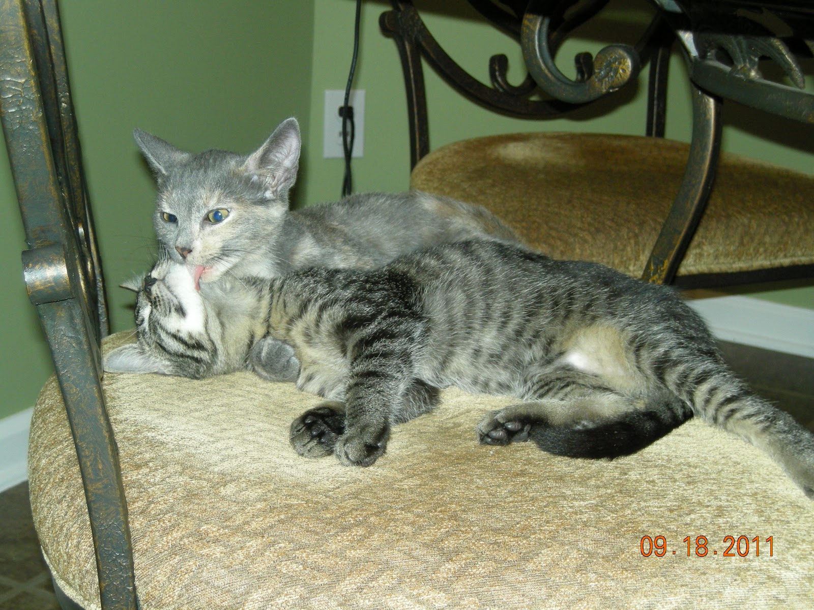 Cuddle time in the kitchen chair |