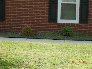 Our next house project on the to-do list is a big one: completely re-do the flower beds around our house. They just look horrible! I don’t know if the original owners just never did much with them, but there are a few short, pathetic-looking bushes and not much else other than weeds growing. The only thing I like about the landscaping in the front of our house are the trees. I can’t wait for those maple leaves to start changing colors! Here are a few “before” pictures so you can see what we’re starting with. It can’t look much worse than this, so it has to get better, right?