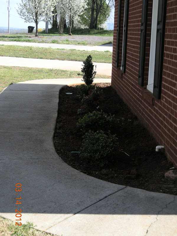 For the last 4 or 5 months, our flower beds have just been plain dirt. Really, plain red clay. Back in October, we pulled up the pitiful little shrubs that were already there. I don’t know how long they’d been there, but they definitely weren’t very big or healthy looking. So, we decided to just start over and plant what we wanted.