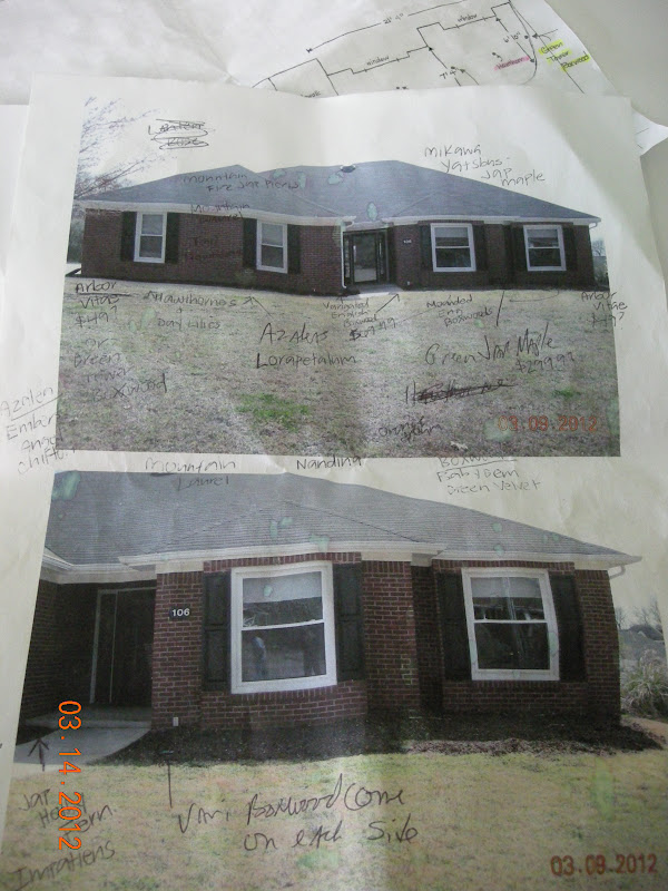 Friday was our “planning” day. First, we measured the beds, and Travis drew them on graph paper with labeled dimensions. We also took some pictures of our house and printed them out on paper. Then, with a few shrubs in mind that we liked, we headed to Reseda Nursery. A guy there showed us around, took a look at our pictures and drawing, and gave us some suggestions for what to plant where. It was pretty overwhelming at first…just because we didn’t know what we were doing! We spent a couple of hours there, and then we headed to the other side of town to check out Bennett’s Nursery. We did basically the same thing; someone showed us around and gave us their ideas for what we should plant. Overall, we spent about 4 hours looking at everything! After a quick supper at Sun Cafe, we looked over all of the different shrubs online one more time and made some final decisions about what we wanted to plant.