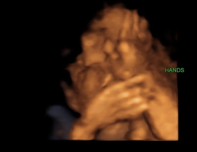 We’ve had an exciting and fun week so far. Monday, we had a 4D ultrasound done before my regular appointment. I was so excited to get a sneak peek of what Brooklyn actually looks like! She’s still got some fattening up to do, but we can tell who she’s going to look like! The consensus is that she either has my nose or my sister’s nose, so everyone has been saying she looks “just like me.” I’m horrible at looking at babies and deciding who they look like, so I’m just going with everyone else’s opinion. Guess we’ll find out soon enough anyway! During the ultrasound, Brooklyn put her thumb in her mouth, smiled several times, stretched her head back, and put her hands in front of her face. So cool! I forgot to ask how big she was, but I’m assuming she’s right around 2 lbs. Here are some of the best pictures we got. The whole time, she was nestled up close to the placenta, so we couldn’t get a great shot of her whole face, but the pictures are still good…
