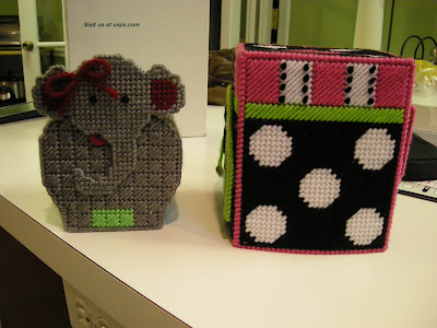We also got the neatest gift in the mail on Wednesday from Jennifer Baxter, a friend from Tuscaloosa. She made us the cutest tissue box holder and piggy bank. She patterned the tissue box holder after the nursery bedding, and it looks awesome! Thanks again Jennifer! :)