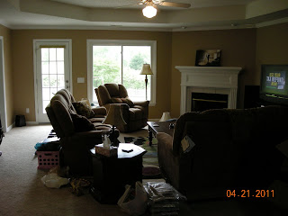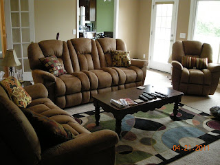 Travis’s favorite purchase so far…our comfortable couches and recliner! |