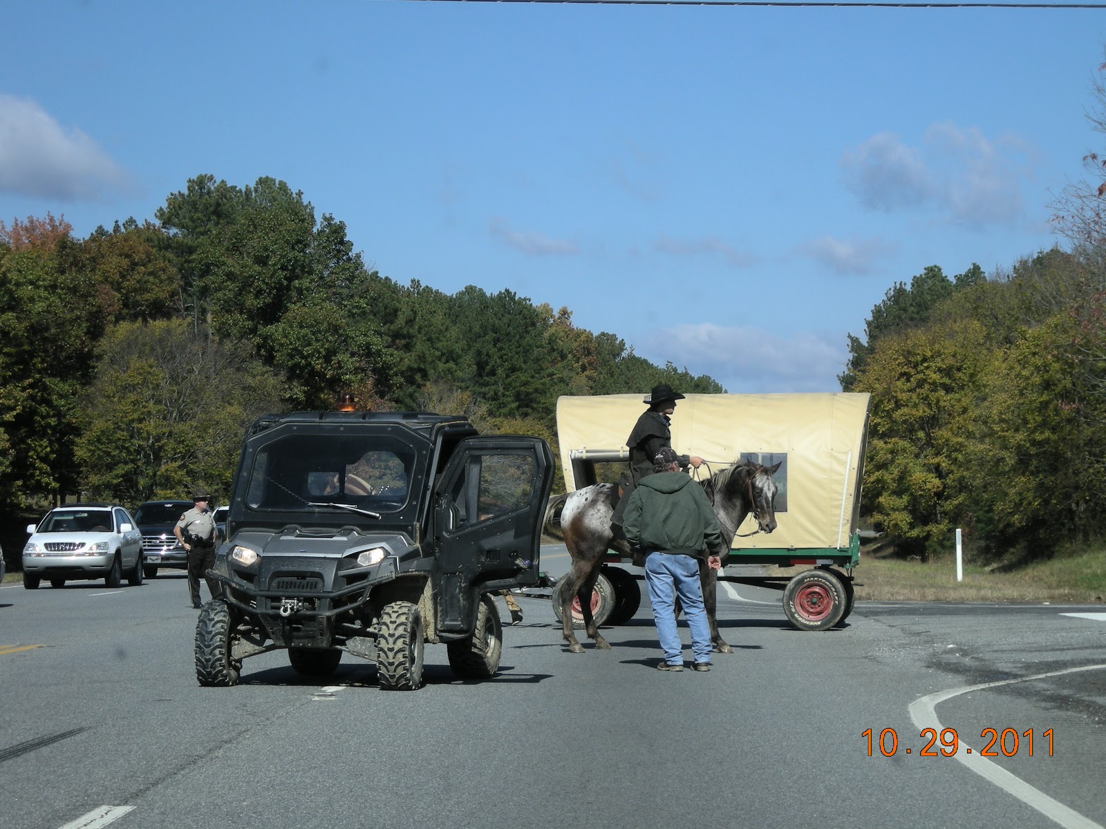 On our way out of town, we got stopped on the highway by a bunch of horses and wagons. Not sure what that was about, but it was pretty funny!