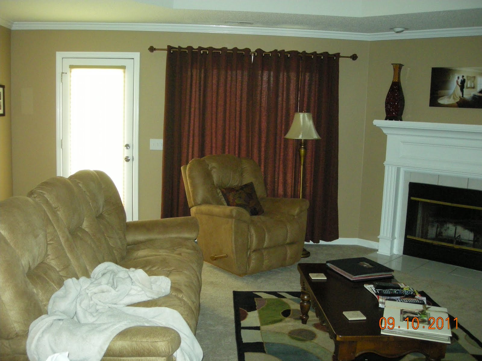 Friday night we hung some curtains in our living room. I got them on clearance at Bed, Bath, and Beyond, so they were pretty cheap. They look pretty good! We’ve also ordered blinds for the small window in our bathroom, so we’ll put those up once they get here. Then, we’ll decide about putting blinds on the other windows in the house or not. Lots of decisions!