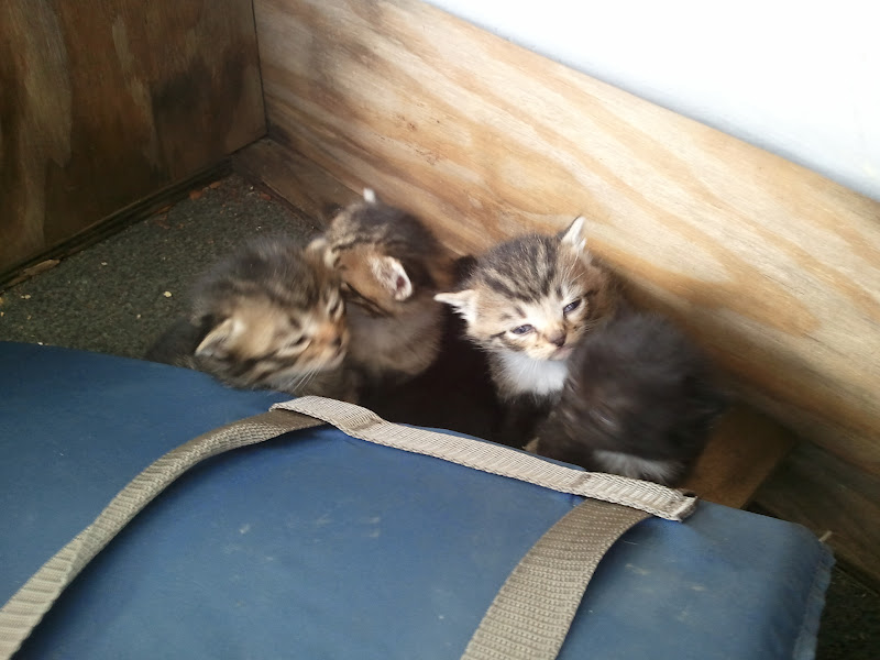 KITTENS!!! 5 of them! They were inside one of the seats next to a life jacket. Gabby and Felix were so excited to hear the news. They really want a little brother or sister. Sadly, Mom did some investigating and found out that they belong to a lady up the street who has lots of cats. Apparently, the momma cat likes to go off and have her babies and bring them home after a few weeks. When Mom went to go check on them the next day, the kittens were gone. So, either the lady came and got them, or the momma cat took them away. How sad! Felix and Gabby really wanted another playmate :) Oh well. One day, they’ll be getting a boxer puppy to play with…I’m sure they’ll love that!