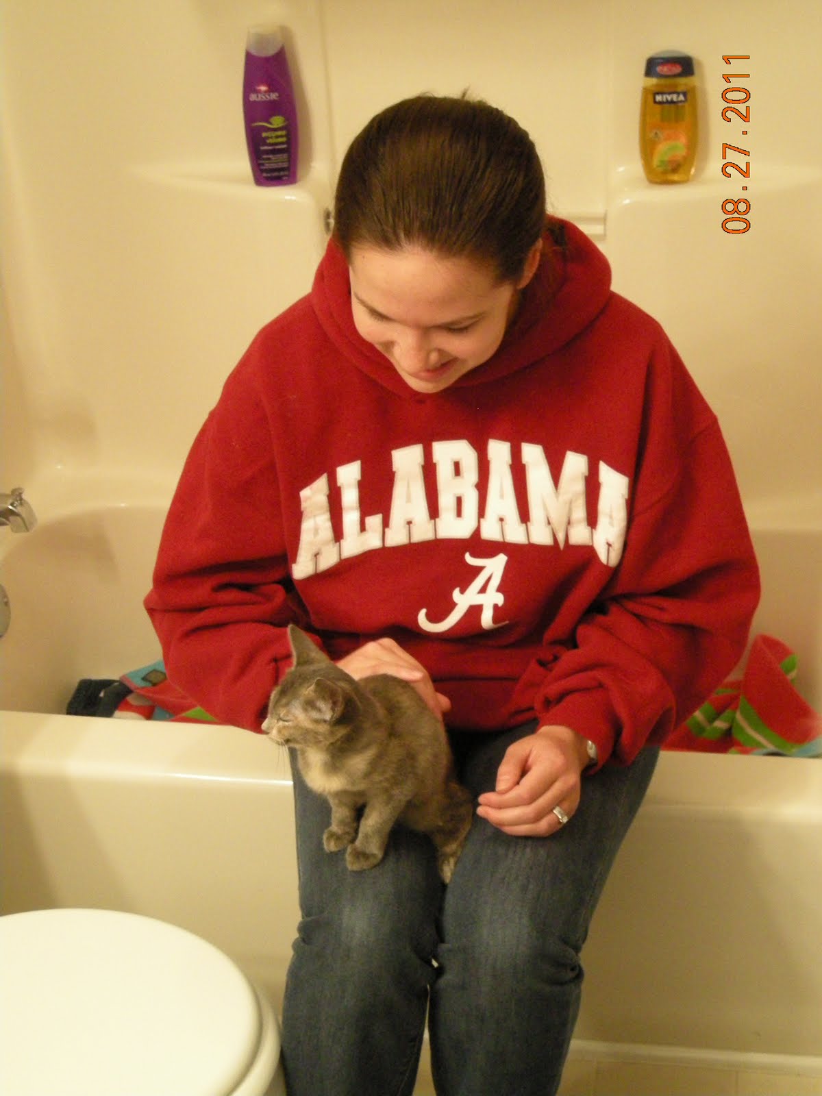It is funny how much I feel like a “parent” already, and these are just pets! We got up 3 times the first night we brought them home to check on them when they were meowing or making noise. Travis said if this is how it’s going to be when we have an actual baby, he’s not going to do very well. He doesn’t function well on little sleep! We also got up once Monday night when we heard a loud crash…still not sure what that was! They are totally dependent on us for food and cleaning out their litter box. And I have to get on to them when they start jumping on the couches. We are trying to train them to stay off the furniture…we’ll see how well this goes. It’s going to be hard because they LOVE to climb. It’s just funny how much I already love those kittens…I’m definitely attached :)