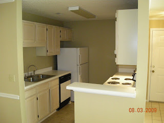 This is our last week in Huntsville for the summer. I’m really going to miss everyone here…we’ve got a lot of great family and friends here! Here are some pictures of a 1 bedroom, 1 bath apartment in Rivermont (the apartment complex we’re going to be living in this fall and next spring in Tuscaloosa). It’s not our exact apartment, but it’s set up exactly the same: