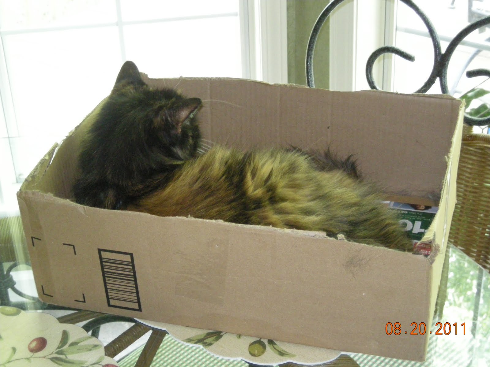 I also snapped a few pictures of Callie hanging out in her new favorite cardboard box on the kitchen table…