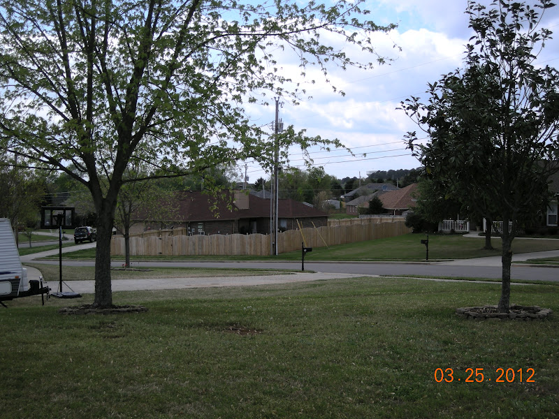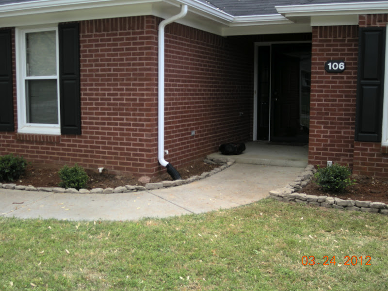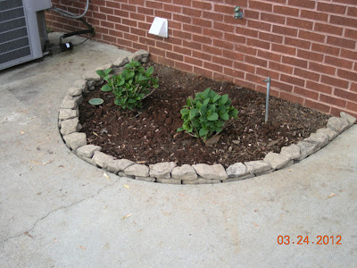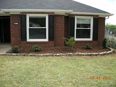 This past weekend was dedicating to outlining our flower beds, trees, and mailbox with rock. I just have to say….what a big improvement!!! I was pretty nervous about it before we bought the rock at Reseda. I had a hard time picturing how it would look with our red brick house. Plus, the rock was going to cost over $200! So, if it didn’t turn out very good, there goes all that money down the drain! Luckily, although we are pretty frugal in most areas, our house projects usually spare no expense as far as Travis is concerned. So, he wasn’t worried about it at all. That is, until the guy at Reseda loaded the pallet of rock into the back of the truck. I think Travis was about to panic thinking that Jeff’s truck was going to fall apart under the weight of the pallet. Luckily, the truck did just fine, and we made it home with all the rock and the truck in one piece. Whew! :) Thanks again, Jeff and Melissa, for letting us borrow your truck! Hopefully we can get it back to you after this coming weekend! :)