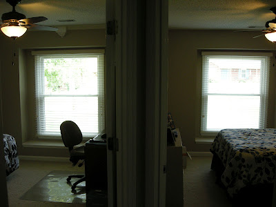 Blinds and a ceiling fan totally update this room! |